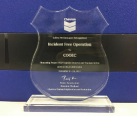 Won the highest Safety Performance Award of Chevron for Incident Free Operation