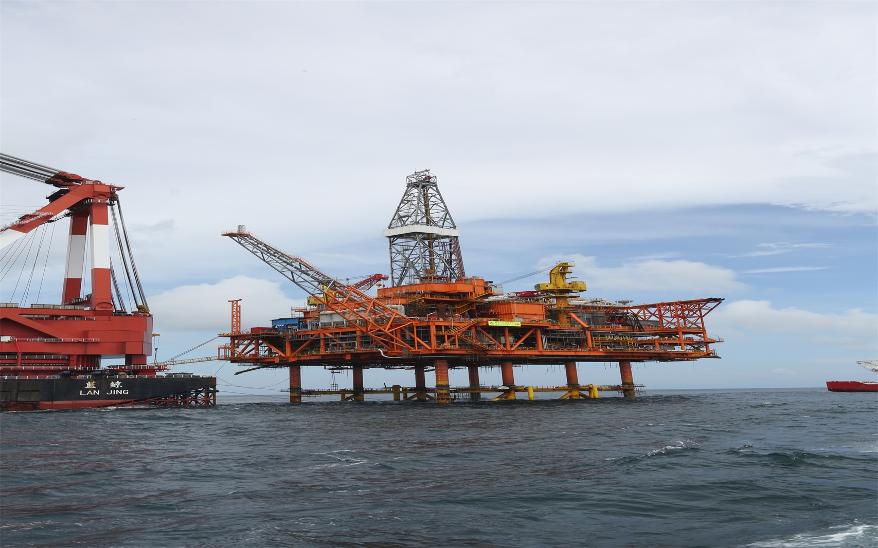 项目名称:陆丰7-2项目 项目完工时间:2015年1月 项目简介:陆丰7-2油田距香港约200km,水深约106米。业主为新田石油中国有限公司。该项目工作范围包括有一座9806吨导管架及12500吨组块的设计、建造、拖拉装船及海上安装,一条长约15公里的12寸/18寸双层海管的铺设。 项目亮点:陆丰7-2 EPCI总包项目是suncitygroup太阳集团实施的首个万吨级组块低位浮托项目。该项目融合传统组块被动式浮托方法及静态提升两项成熟的技术,以满足南海复杂环境条件下的浮托要求,保证了项目的顺利实施。低位被动式浮托牵引提升安装方法是对浮托技术的一种创新式尝试。