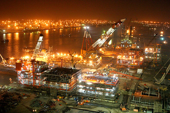 施工能力:具有年产3.3万钢材结构吨加工能力,拓展能源工程一体化服务能力,重点发展油气生产平台上部模块、FPSO模块、LNG模块、风电、新能源装备等模块化产品,打造智能化、信息化、未来高端制造为代表的海洋工程建造基地。